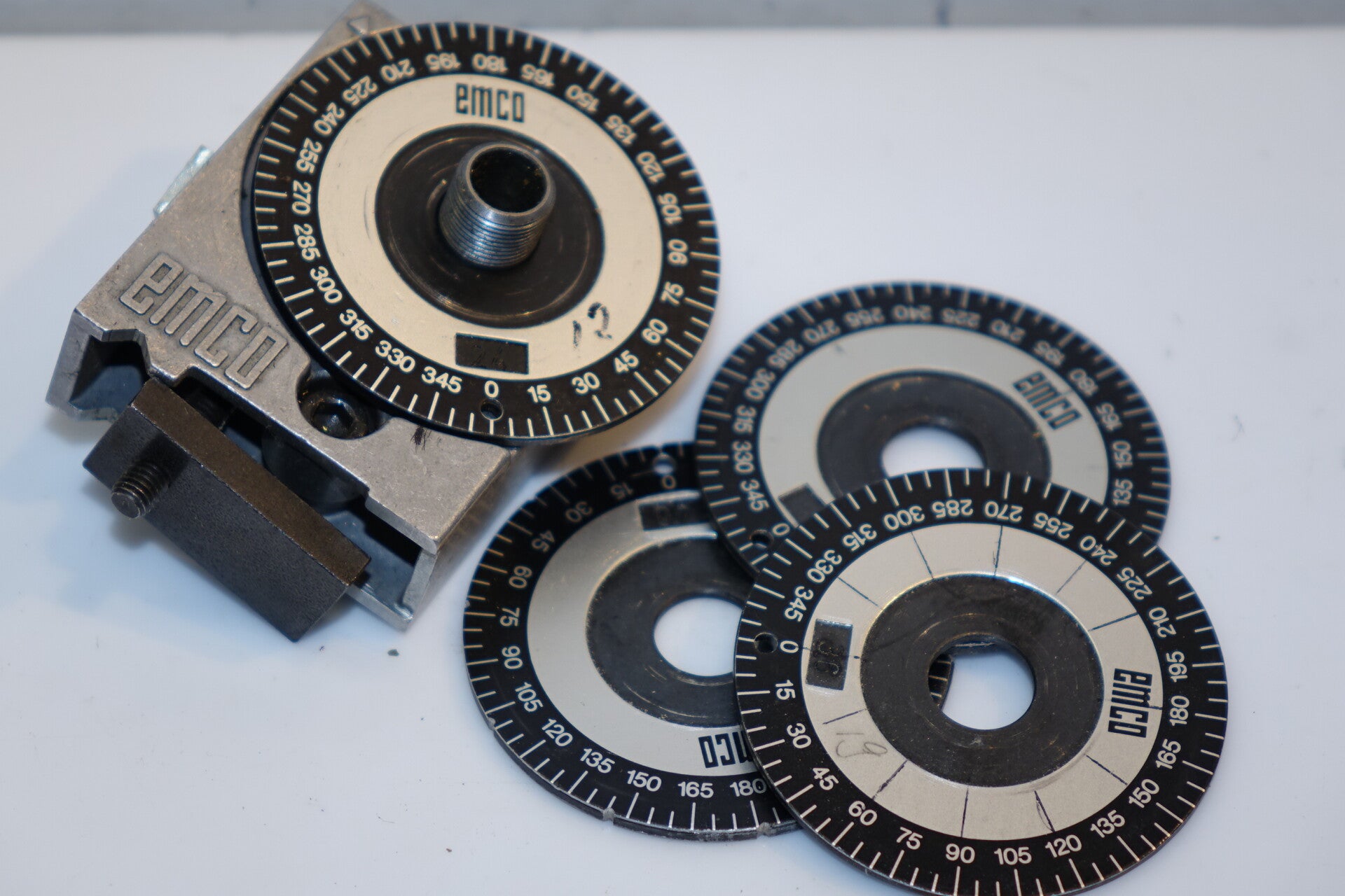 Verdeelapparaat met alle 4 verdeelschijven. Emco unimat 3